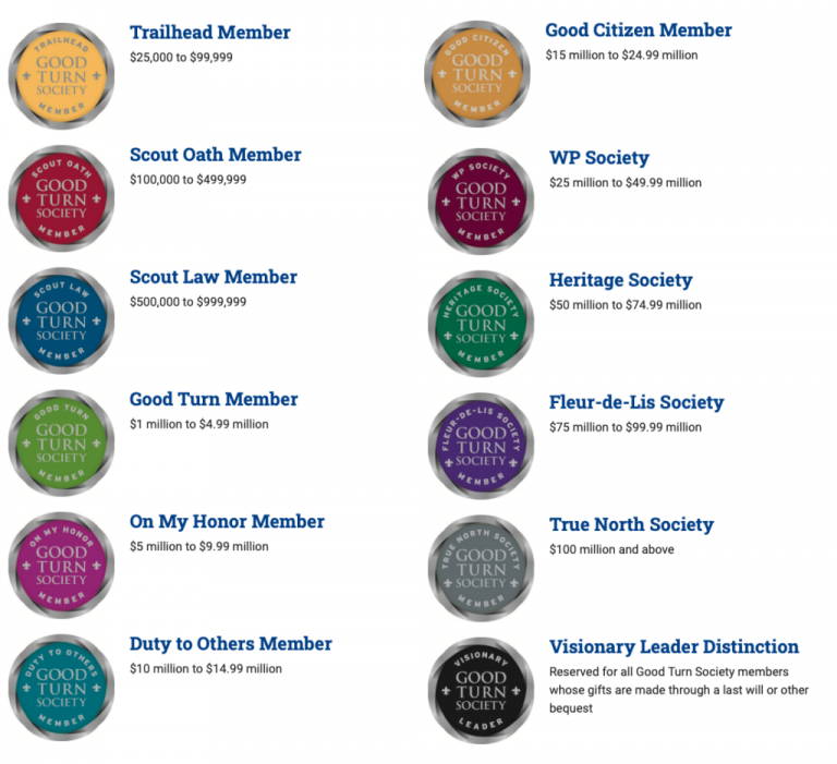 - Additional information is also available at the BSA Foundation’s Good Turn Society web page.